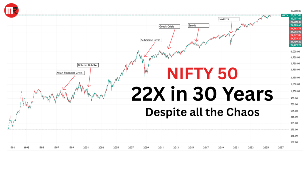News headlines scream “Markets crash 1000 points” or “Recession ahead”. Social media adds more fear. Many investors equate volatility with risk, forgetting that volatility is the tuition fee for long-term wealth generation.